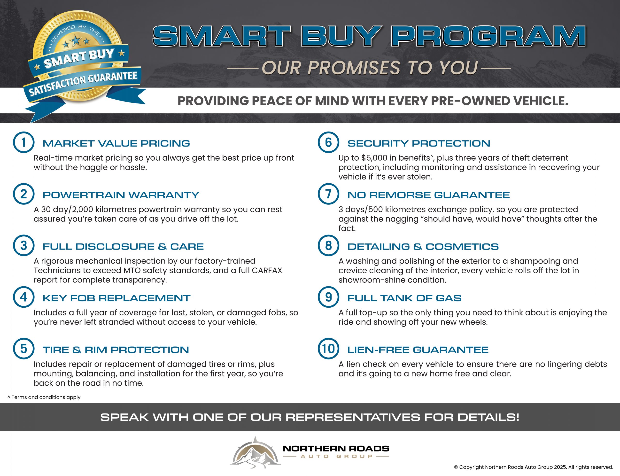 Each of our quality pre-owned vehicles receives the terms for our Smart Buy Program at no cost to you.